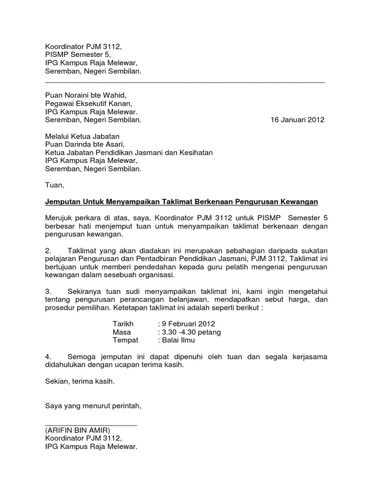 Contoh Surat Jemputan Ke Mesyuarat Taklimat Pdf